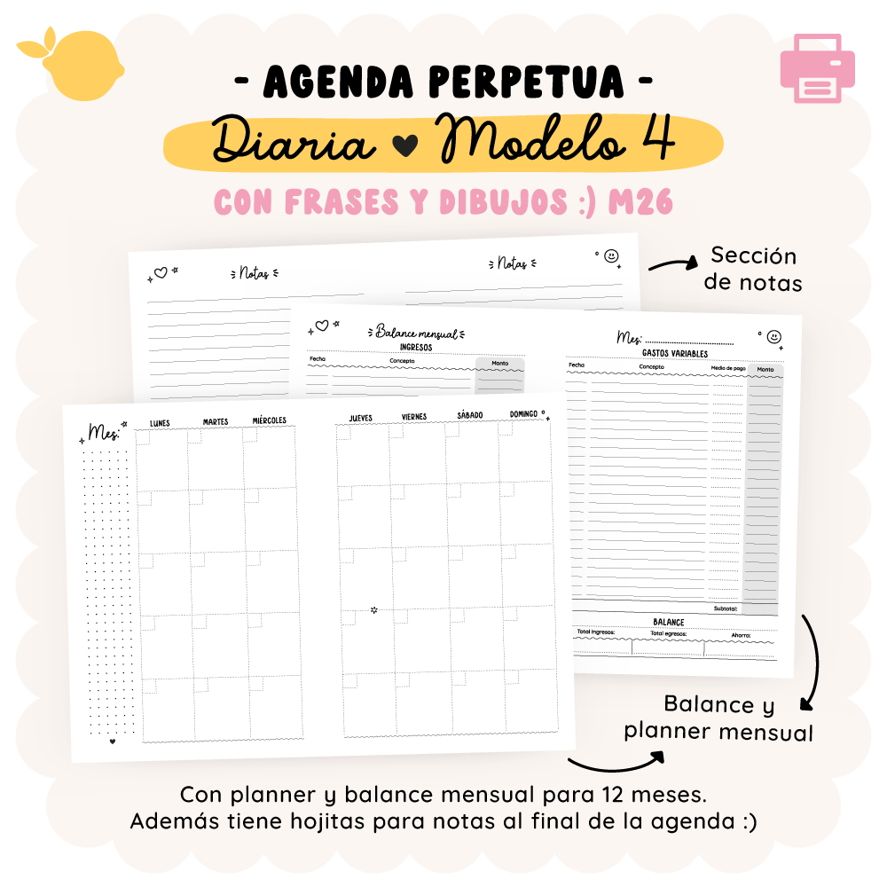 Agenda perpetua – Con frases e ilustraciones M26 – Diaria – Modelo 4