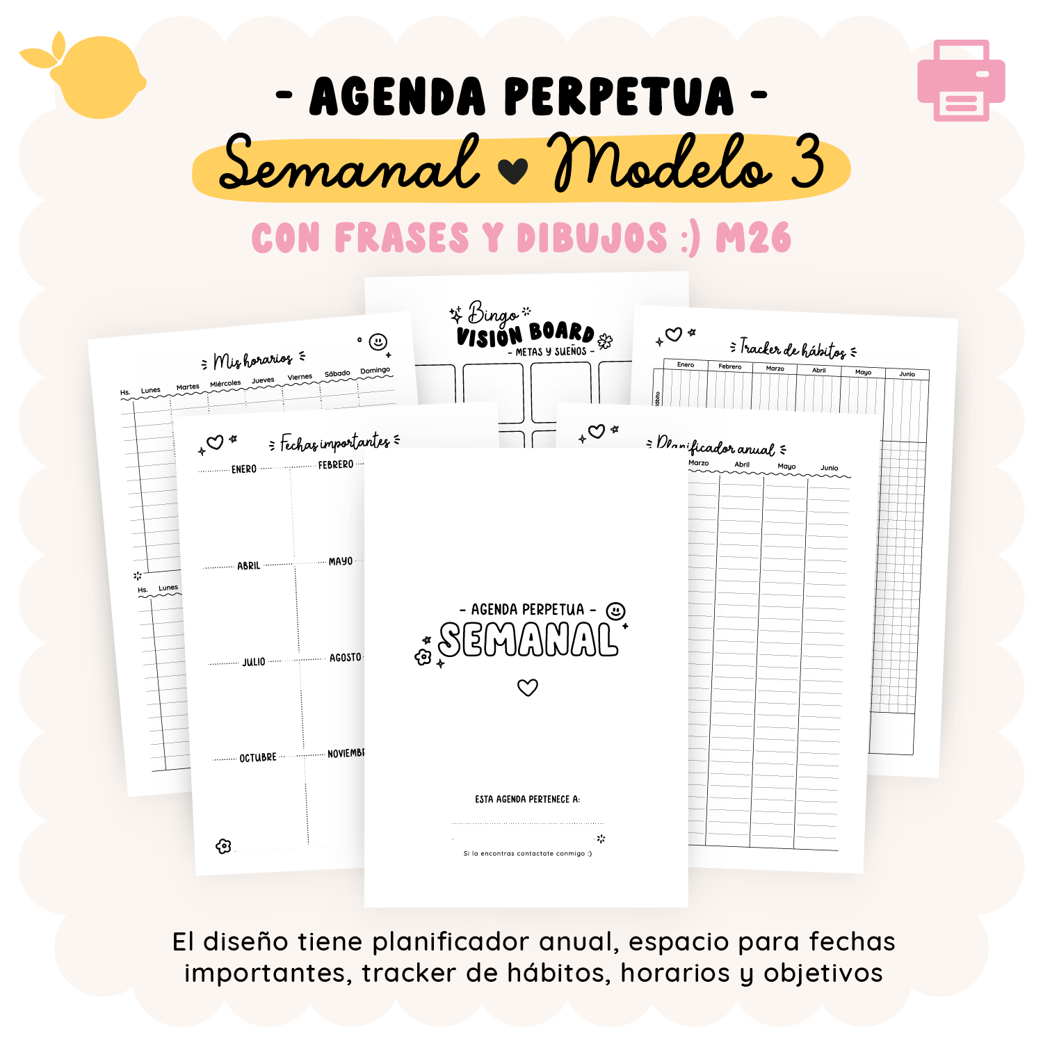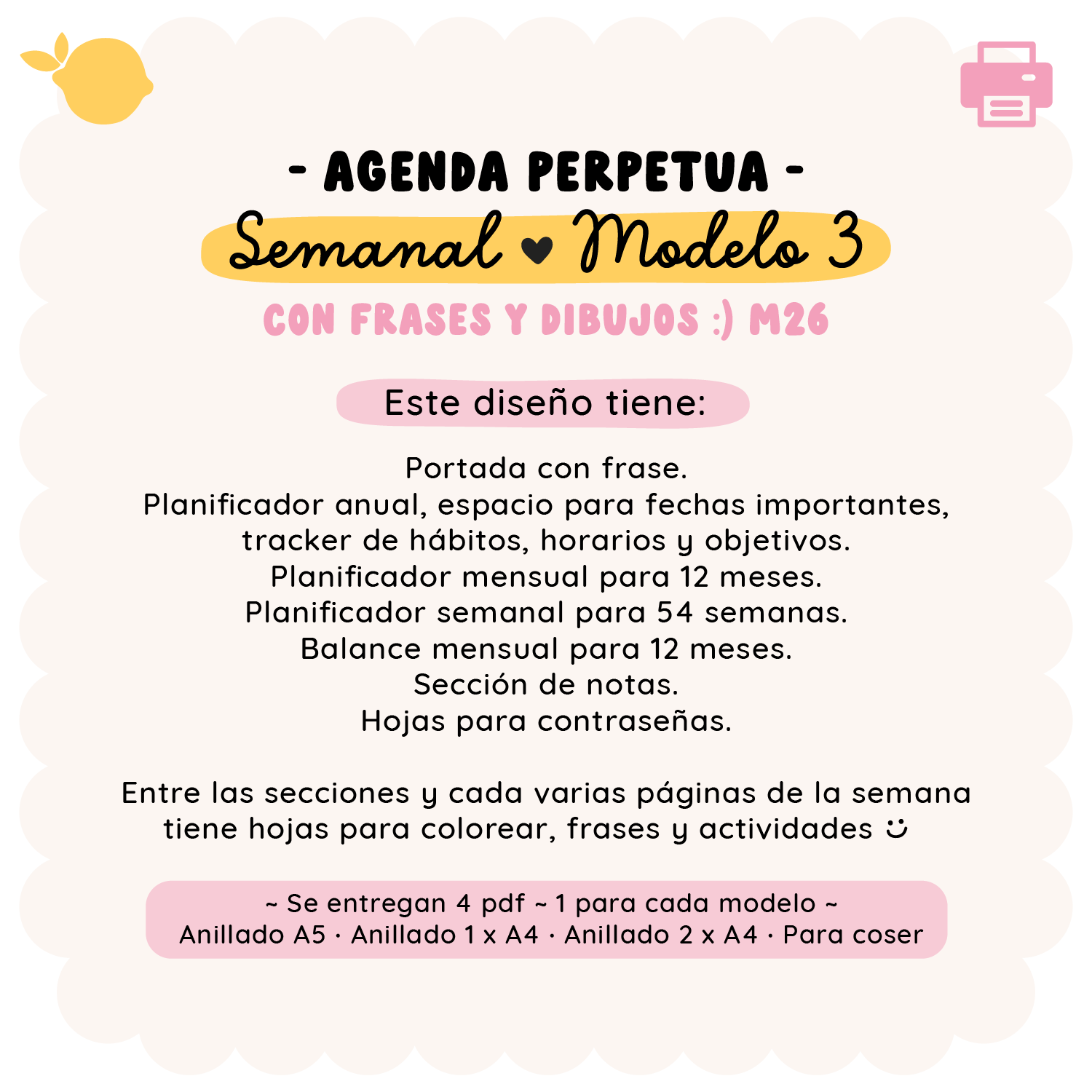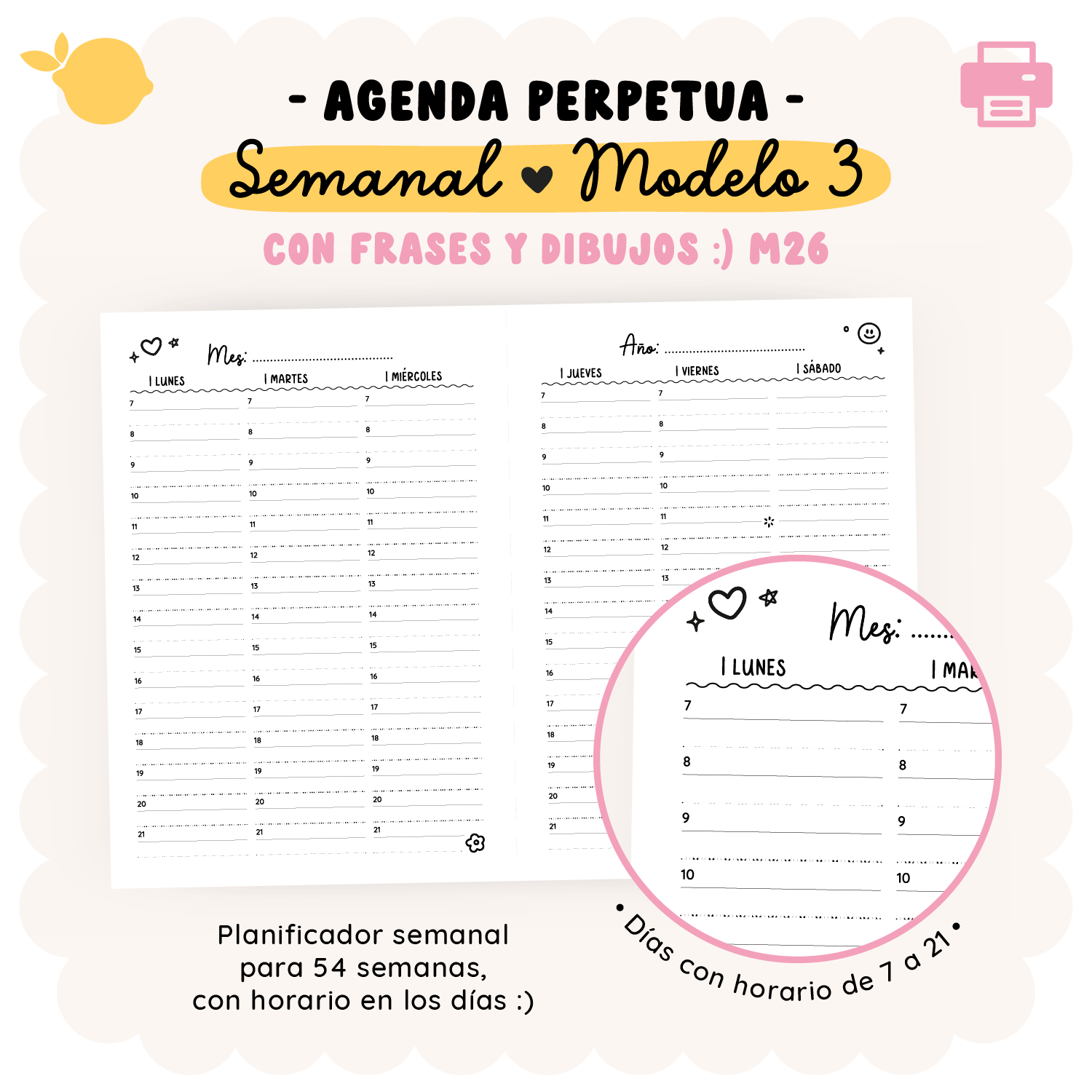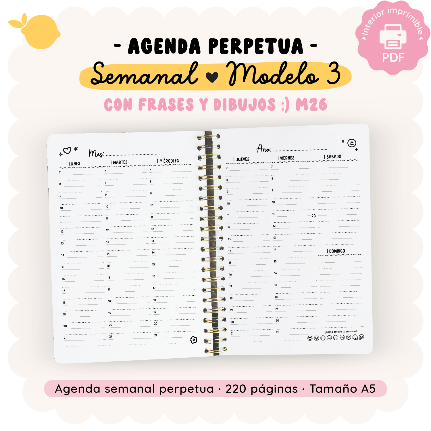 Agenda perpetua – Semanal – Con frases e ilustraciones M26 – Modelo 3: