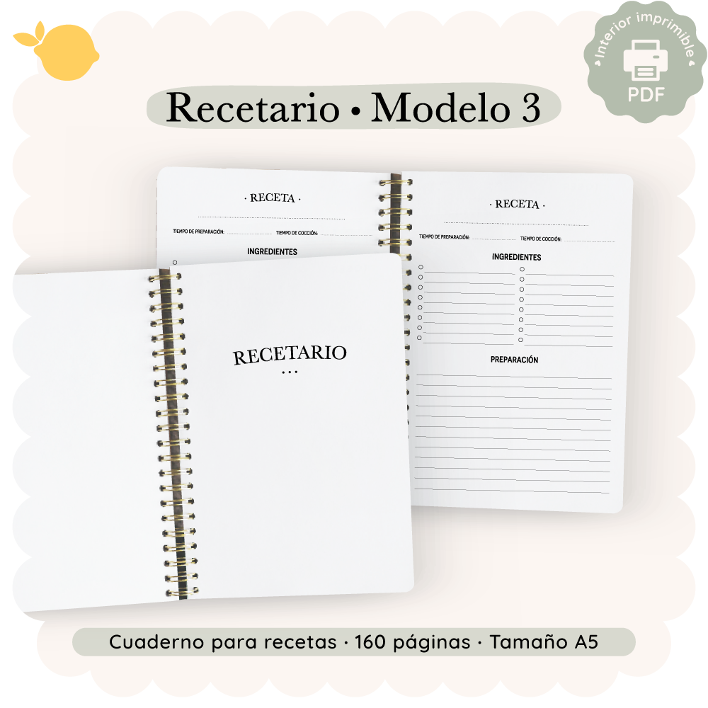 Diseño interior para imprimir y armar cuadernos para recetas 👨🏻🍳 minimalista ✨